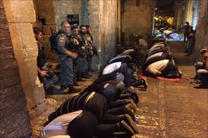 মসজিদুল আকসার দরজার পিছনে ফিলিস্তিনিদের নামাজ