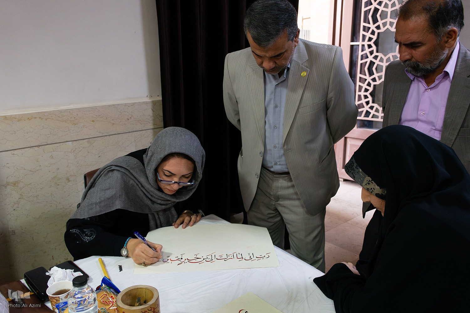 رویداد خوشنویسی زینالعابدین سلطانی اصفهانی، ملقب به اشرفالکتاب، با حضور اساتید مطرح این رشته و اجرای زنده کتیبه روی پارچه از سوی استاد کریم عرب تهرانی، صبح امروز، جمعه ۲۵ مهرماه در آستان حضرت زینب (س) خواهر امام رضا (ع) برگزار شد.