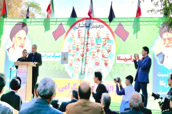 وی با تأکید بر اینکه اساس دشمنی آمریکا با ملت و مردم است، گفت: هرگاه مردم در تاریخ ایران نقشآفرینی کردند، آمریکا مقابل آنان ایستاد؛ از کودتای ۲۸ مرداد گرفته تا فتنه ۸۸. امروز نیز تحریمهای بیسابقه اقتصادی که شامل بیش از هفت هزار و ۵٠٠ مورد است، علیه ملت ایران اعمال شده و فشار اصلی آن بر مردم وارد میشود.